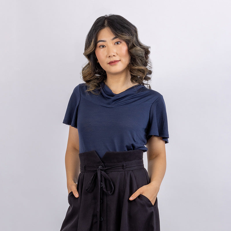 Here we're sewing up the flutter sleeve cowl neck version of the Sylvie sewing pattern! We'll learn how to construct this clever cowl and, insert the V-shaped yoke and sew the flutter sleeves!