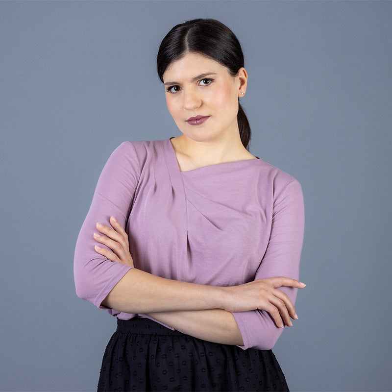 We're thrilled to announce that the Viola Top is here! Viola is a chic, sophisticated knit top that is sure to turn heads! With an asymmetrical neckline and gracefully draped folds, the Viola top is a simple sew with serious impact.